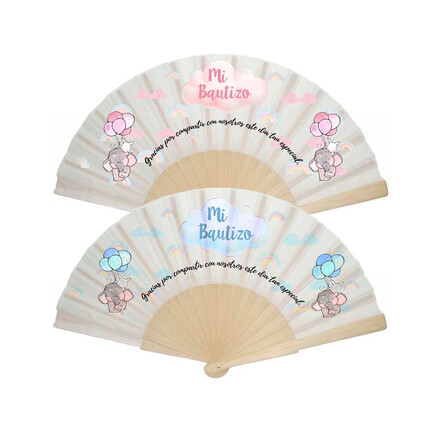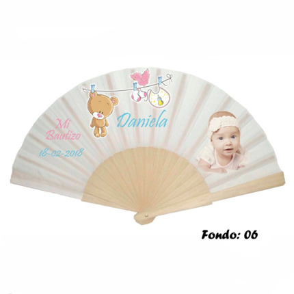 Abanicos grabados a color o grabados con láser en la varilla, También disponemos de abanicos económicos de PVC..