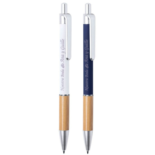 Bolígrafo de aluminio y bambú en dos colores a elegir.