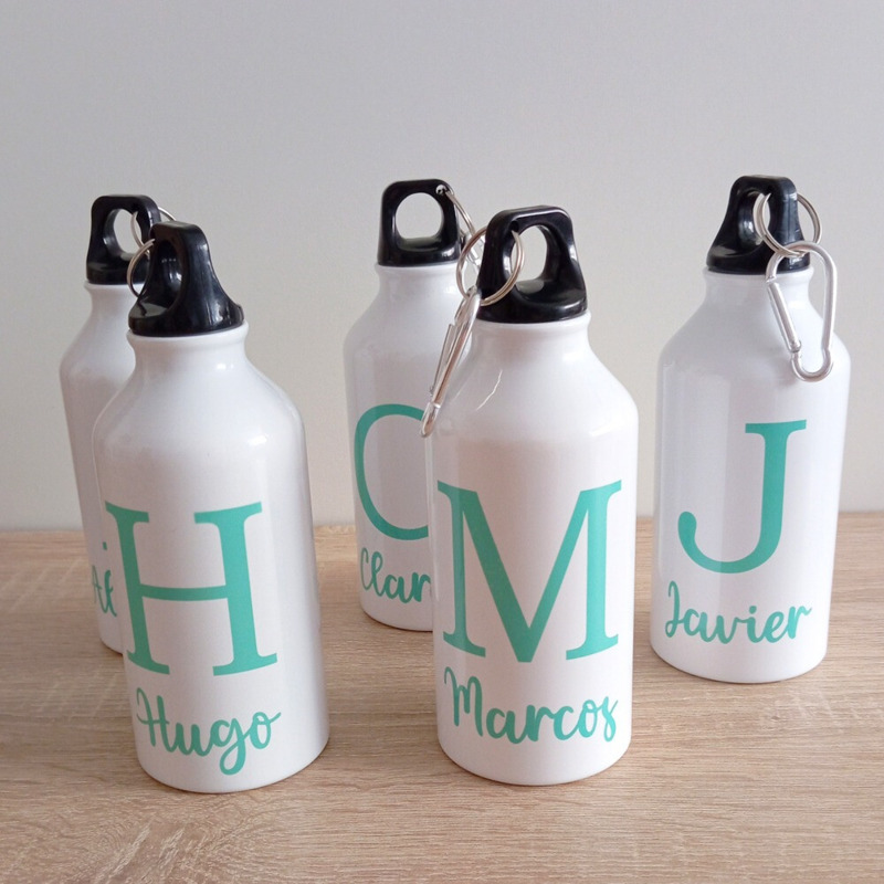 Cantimplora o bidón infantil de aluminio de color blanco ideales para meter el agua dentro y que la puedan llevar siempre encima.