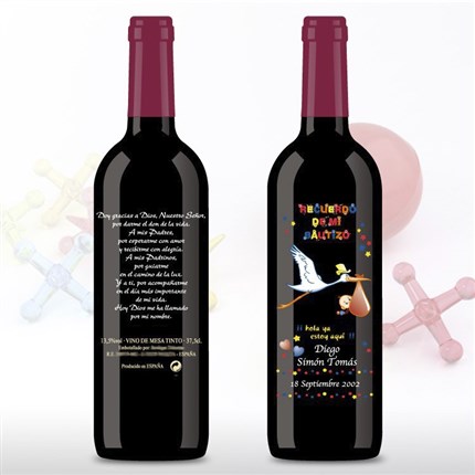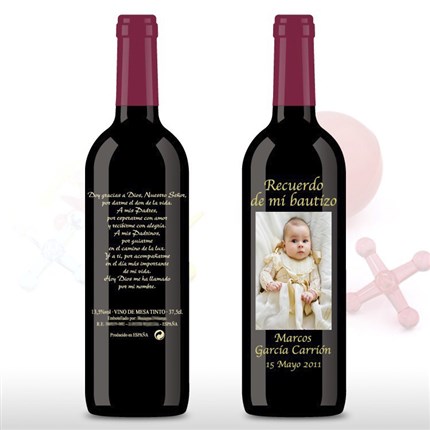 Botellas de vino personalizadas bautizo y Moscatel