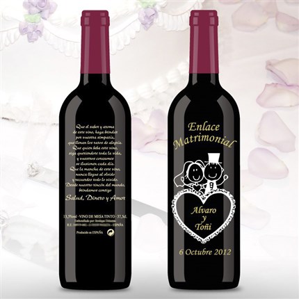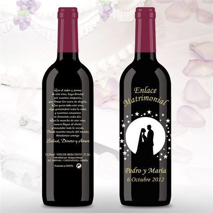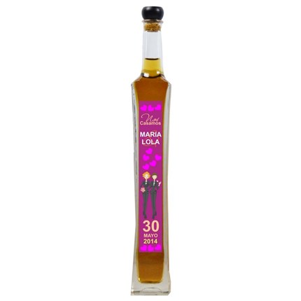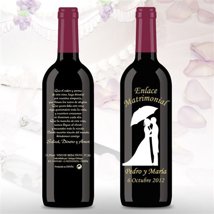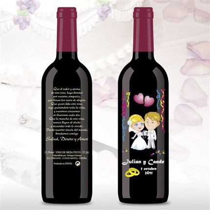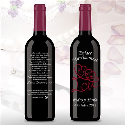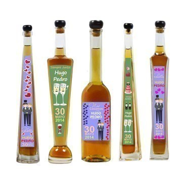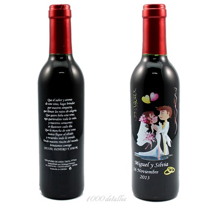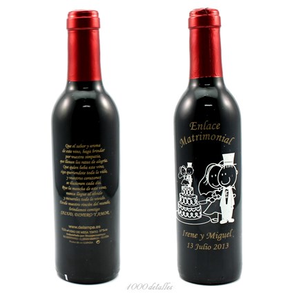 Las botellas de vino son de 3/8 y las que son sin personalizar de dos medidas.