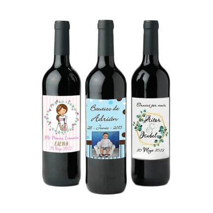 Pegatina para botella de vino personalizada, de vinilo resistente, 18,7 cl.