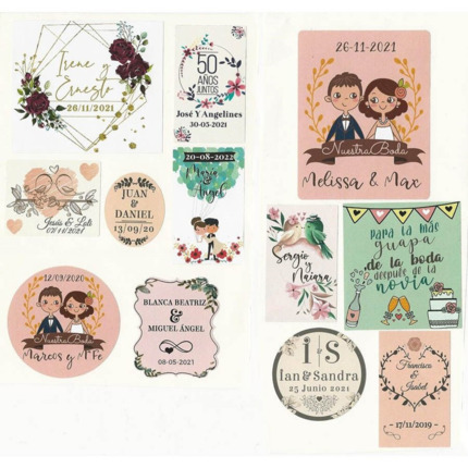 Pegatinas de vinilo a medida con foto o diseño para regalos de boda