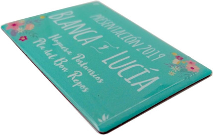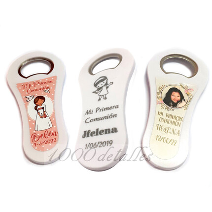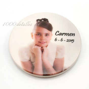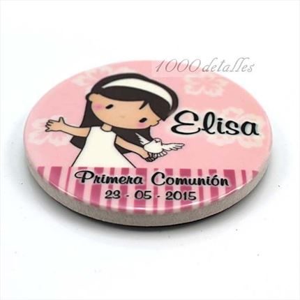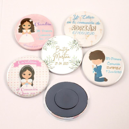 Nuestra tienda online dispone de imanes con formas de comunión y chapas de comunión personalizadas para regalar a los invitados.