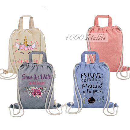 Bolsa Mochila de algodón personalizable, detalles de comunión, boda y bautizo