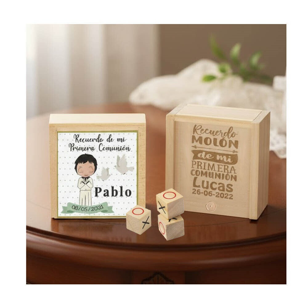 Juego 3 en raya en caja madera, detalle de boda comunión y bautizo infantil