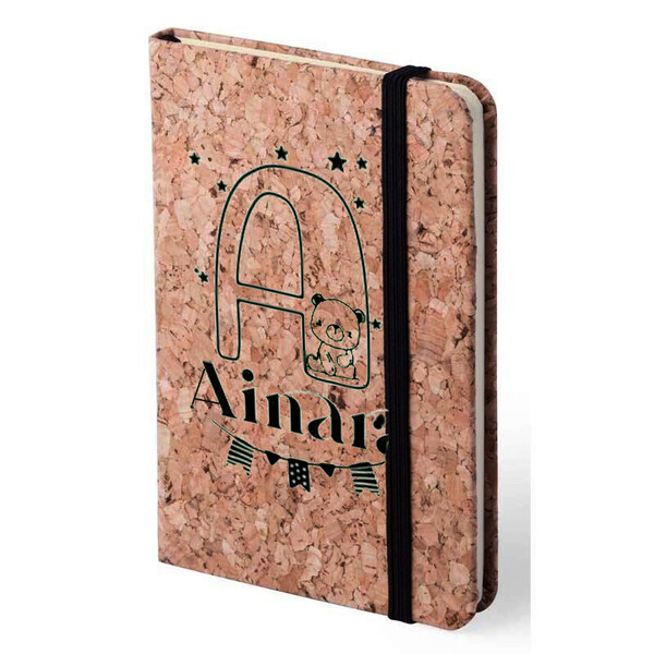Bloc de notas con tapas ecológicas, para bautizo, con tacto suave acabadas en corcho natural.