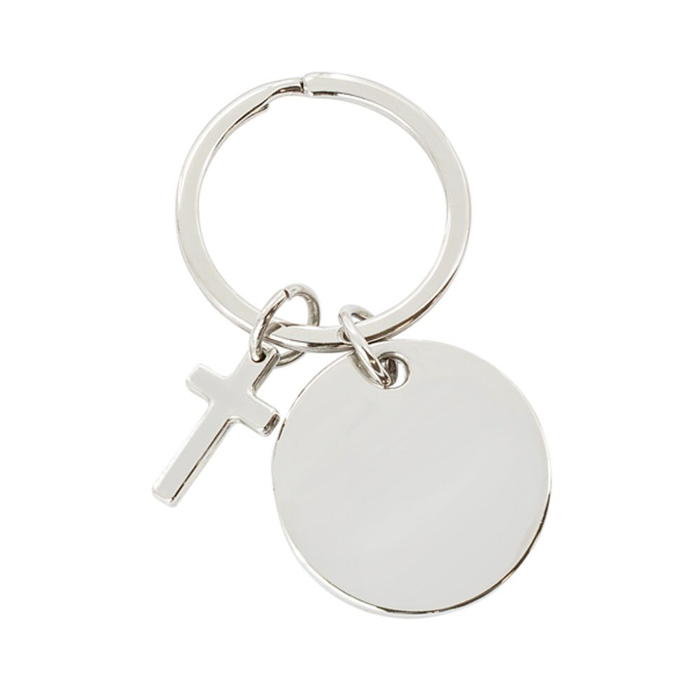 Llavero Metálico Plateado Redondo con Cruz