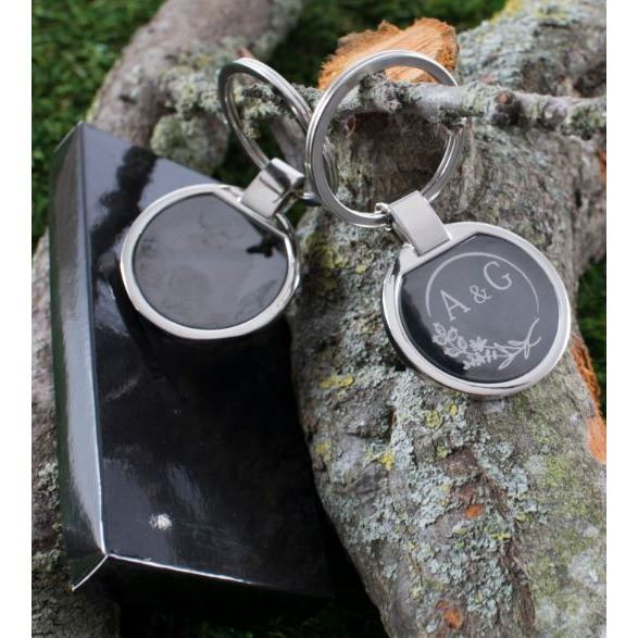 Este llavero viene con cajita de regalo y lo puedes elegir con distintos tipos de grabación, o láser o con lágrima adhesiva de silicona.