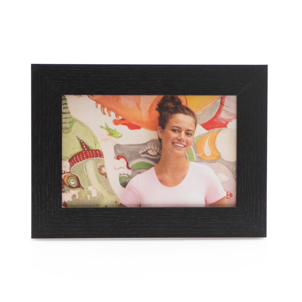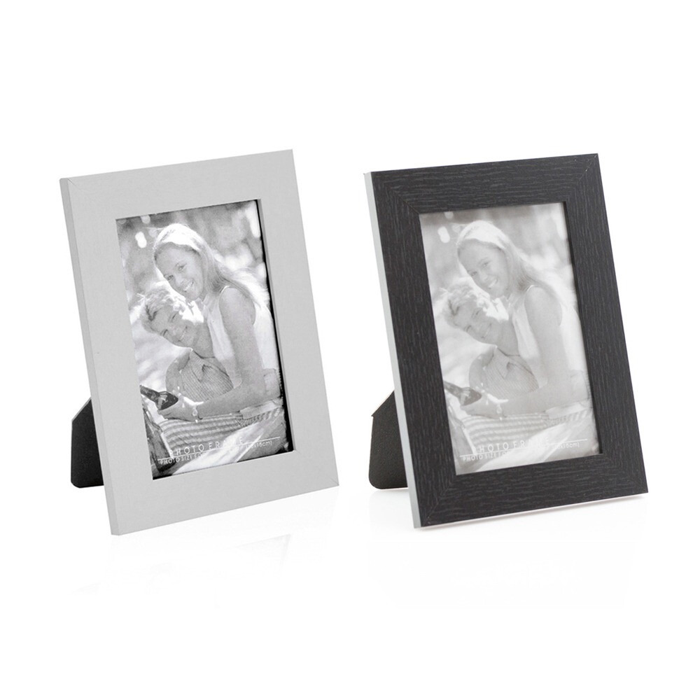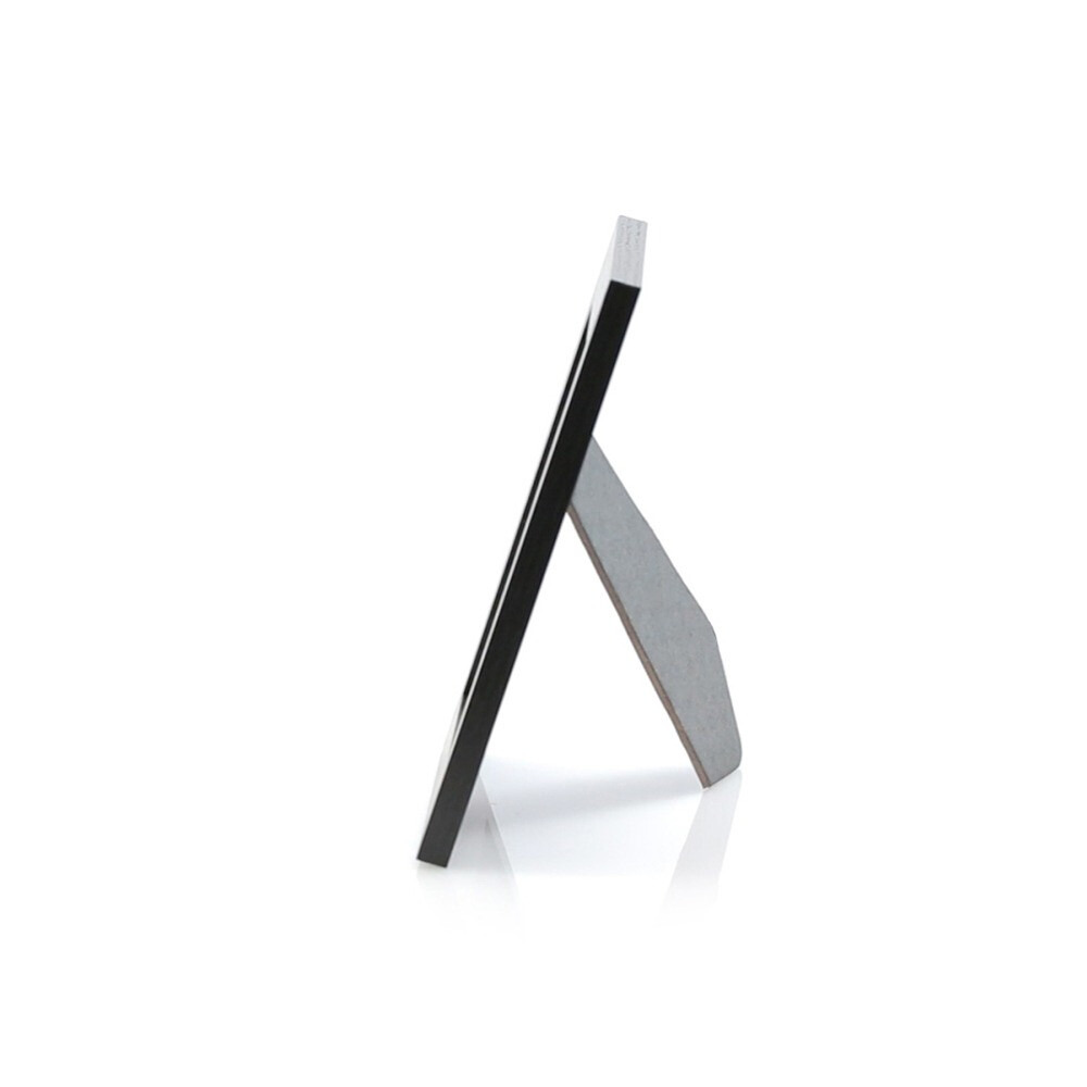 Portafotos de madera y cristal, disponible en color blanco y negro.