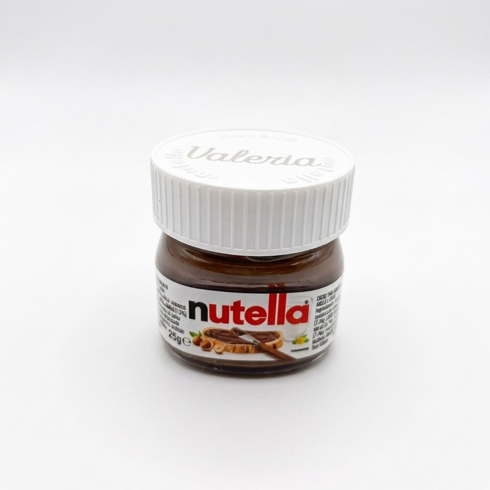 Esta mini Nutella de cristal de 25 gramos es el regalo perfecto para bodas, comuniones y bautizos.