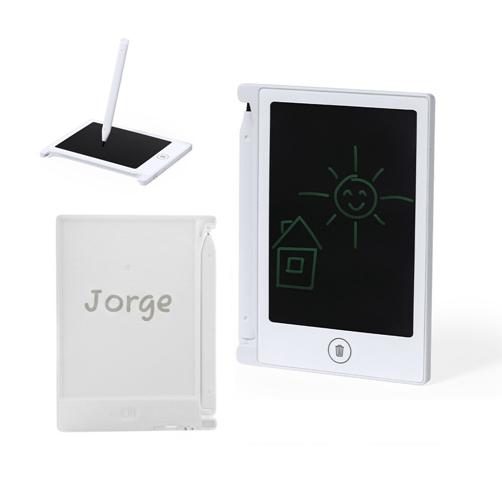 La pantalla LCD es de 4,5 pulgadas, con lápiz incluido, botón de borrado, bloqueo anti borrado y pila de botón incluida.
