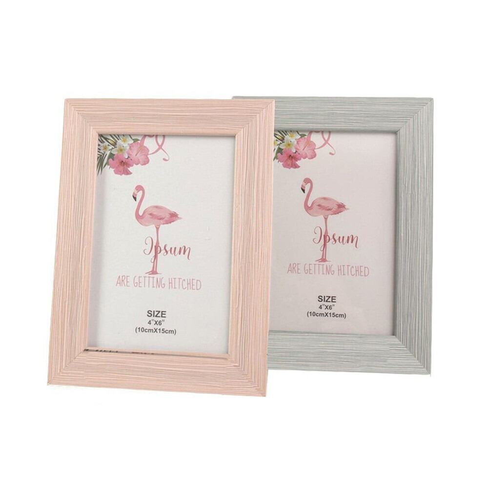Portafotos imitación madera con vetas, en color azul y rosa a elegir, perfecto regalo para los invitados de bautizo, boda, comunión, etc.