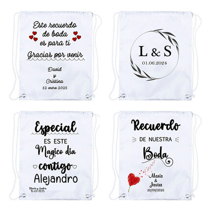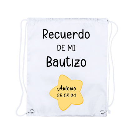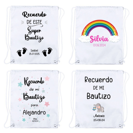 Bolsa Mochila de algodón personalizable, detalles de comunión, boda y bautizo
