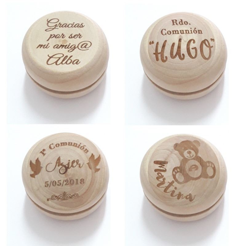 Yoyó de madera para que los pequeños se diviertan. Al ser de madera se puede personalizar con nombre o con una frase.